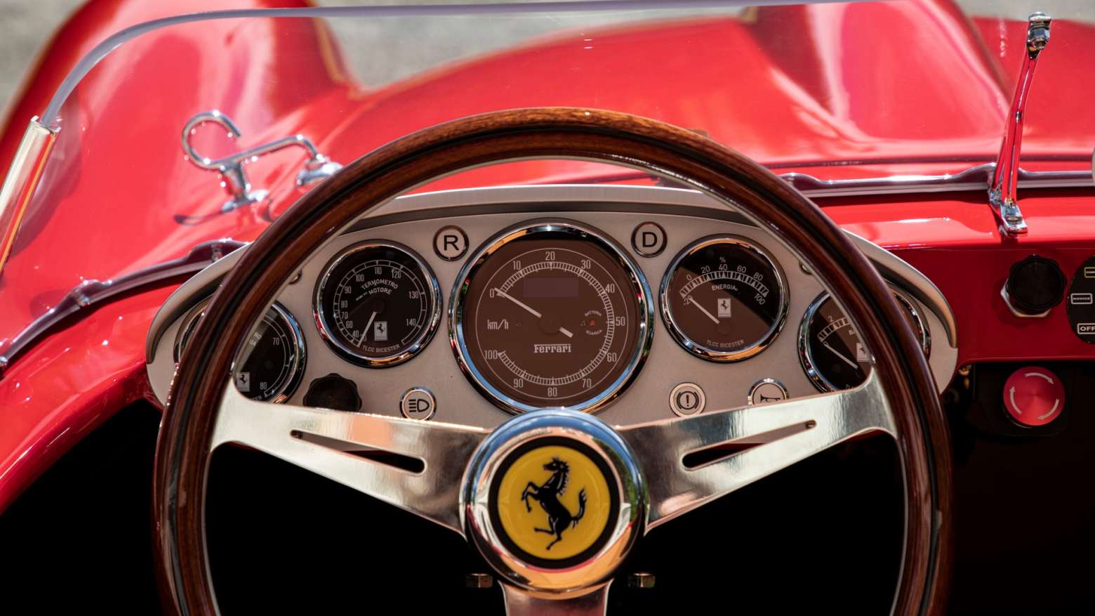 En cuanto a algunas de las otras partes del susodicho, las llantas –de 12 pulgadas– se hacen a mano y quedan envueltas en neumáticos Pirelli reales, y la suspensión coilover Bilstein fue ajustada por los pilotos de desarrollo de Ferrari en la pista de pruebas de la casa en Fiorano, Maranello. A bordo, los pedales vienen del F8 Tributo, los asientos (suficientemente grandes para un adulto y un adolescente) están hechos de cuero, y el conductor sostiene un volante Nardi con el aro de madera. Hasta el salpicadero es acorde a la época.